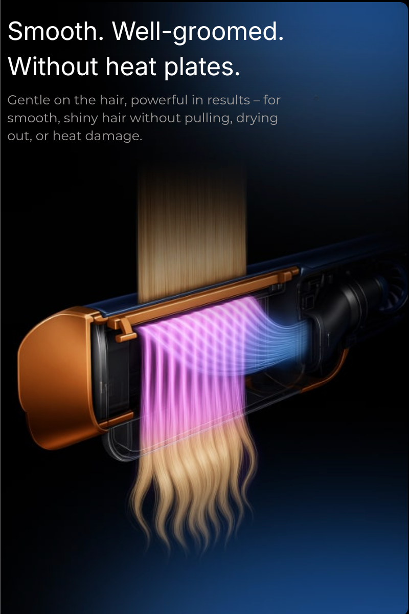 Air instead of heat plates. Shine instead of frizz. Time savings instead of hair stress.